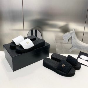 [CHANºL] 벨벳 퀼티드 슬라이드 뮬슬리퍼