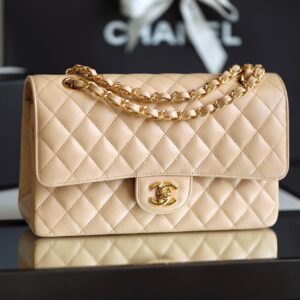 [CHANºL] 클래식 플랩백 베이지 미디움 캐비어 (금장/은장)