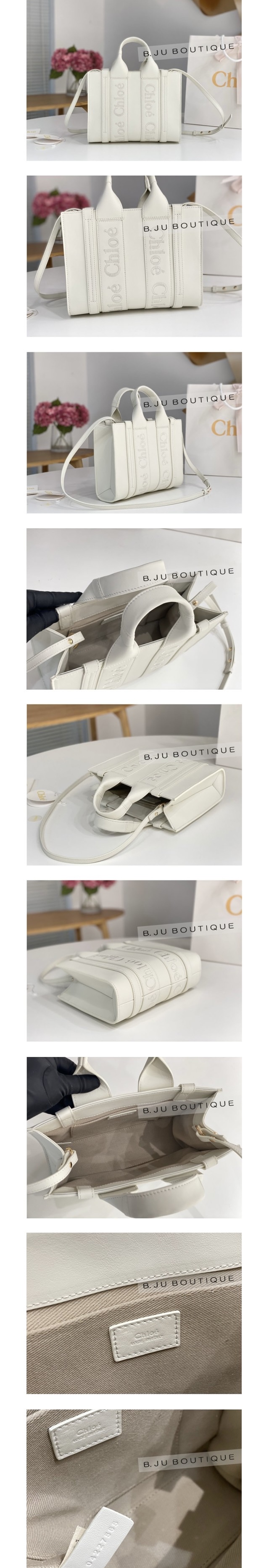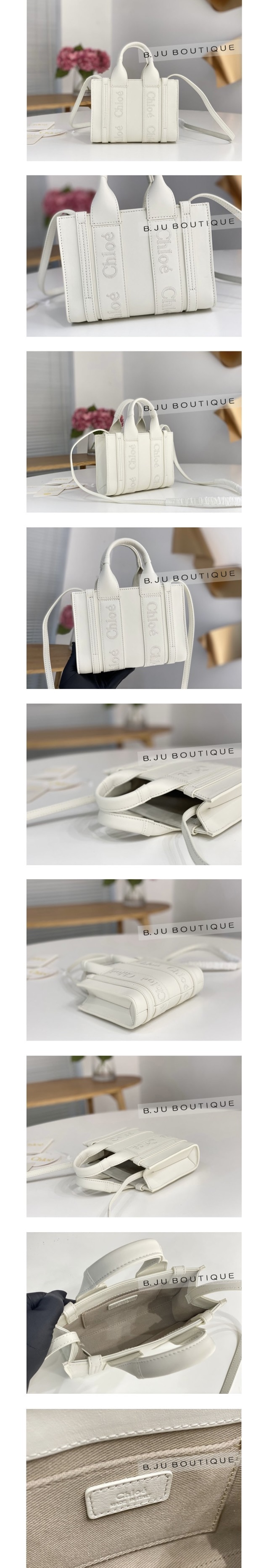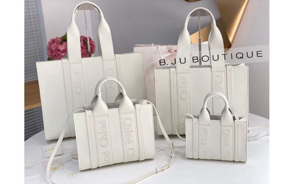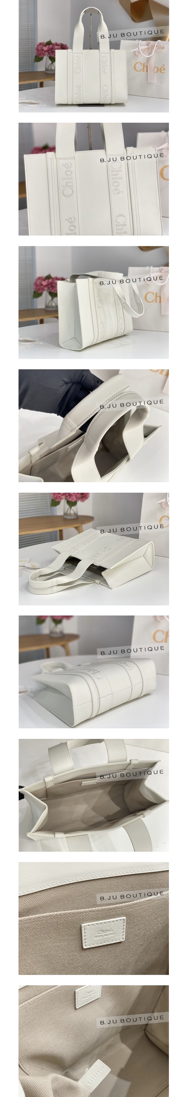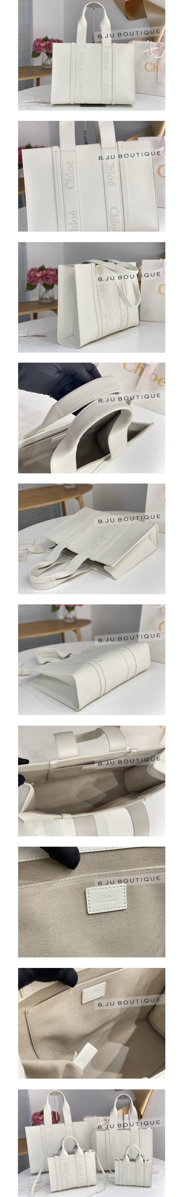 화이트 레더 우디 토트백