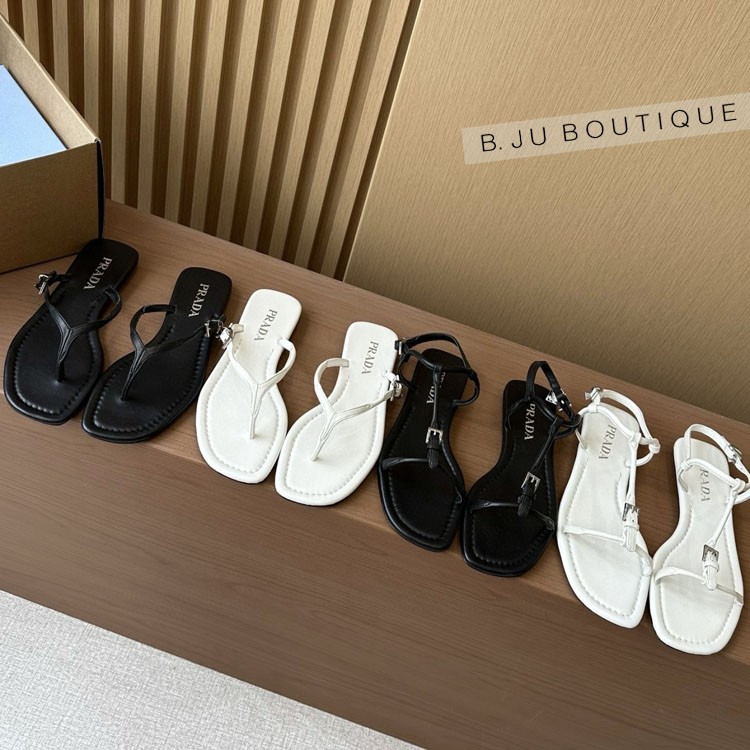 [PRADº] 버클 트라이앵글 참 플랫샌들